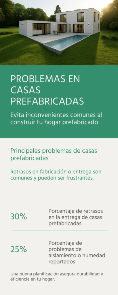 Aunque la producción en fábrica reduce tiempos, pueden aparecer retrasos por falta de planificación, saturación de talleres o problemas en la coordinación con la obra en parcela.